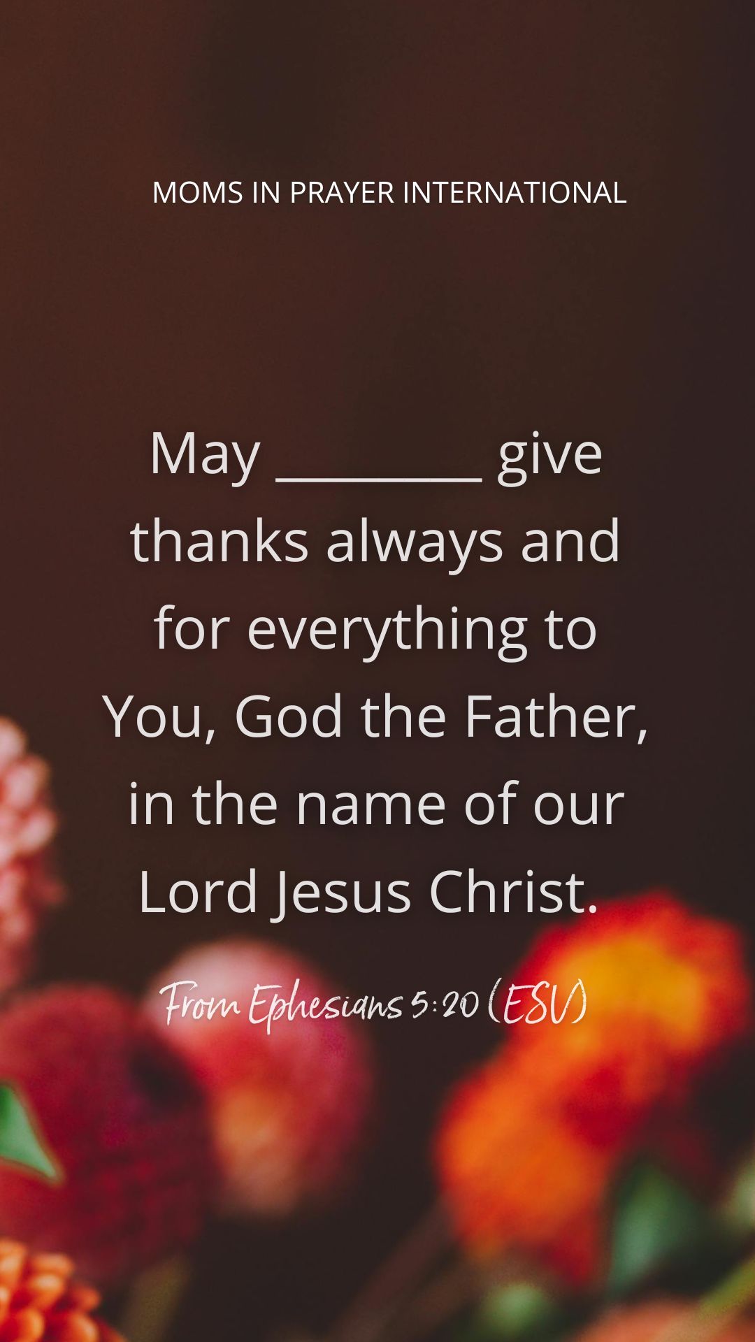 May ________ give thanks always and for everything to You, God the Father, in the name of our Lord Jesus Christ.